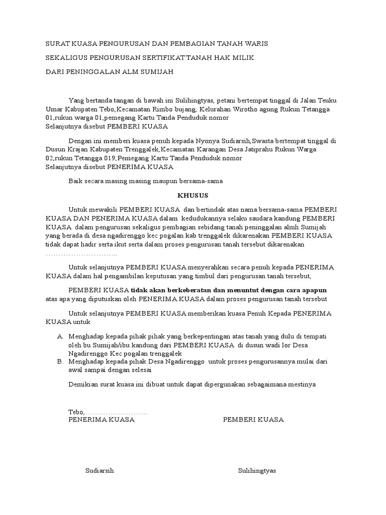 Doc Surat Kuasa Pengurusan Ali Febriandi Academia Edu from 0.academia-photos.com Contoh surat kuada pengurusan tanah. We did not find results for: Check spelling or type a new query. Maybe you would like to learn more about one of these?